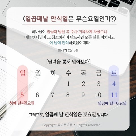 창 2 : 1 일곱째날 복주사 거룩하게 하셨으니 이날에 안식하시니라